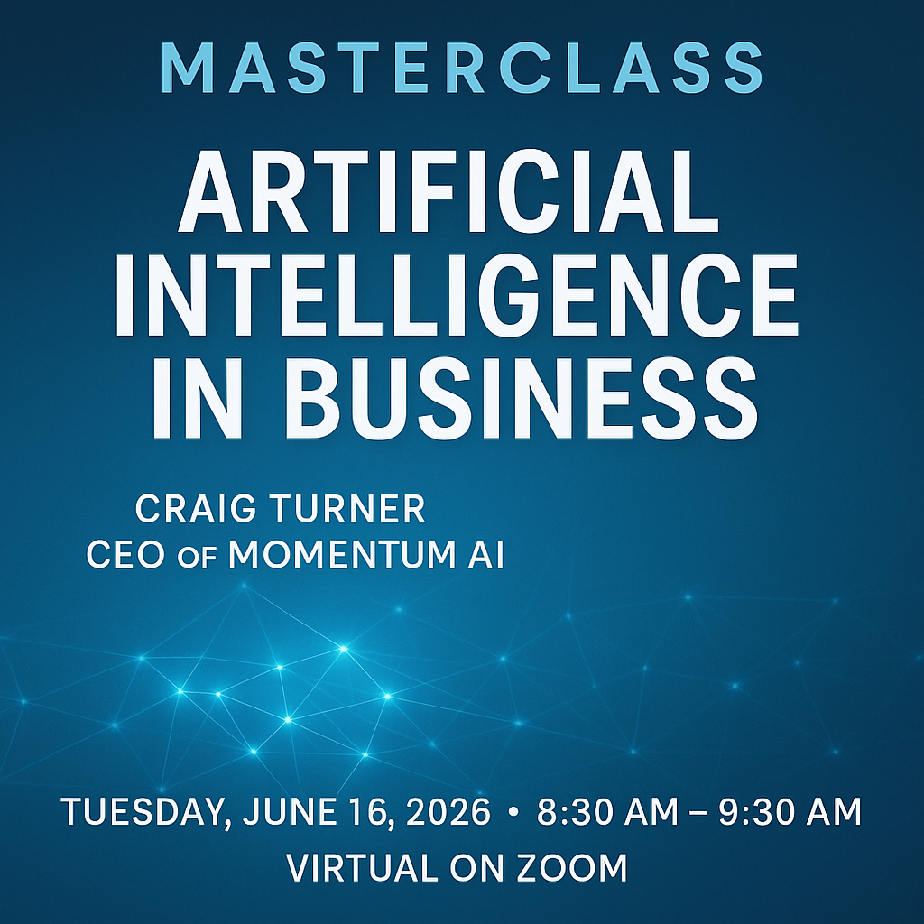 Join us for a forward-thinking Masterclass featuring Craig Turner, CEO of Momentum AI, as he explores how artificial intelligence is reshaping the way businesses operate, communicate, and grow.
