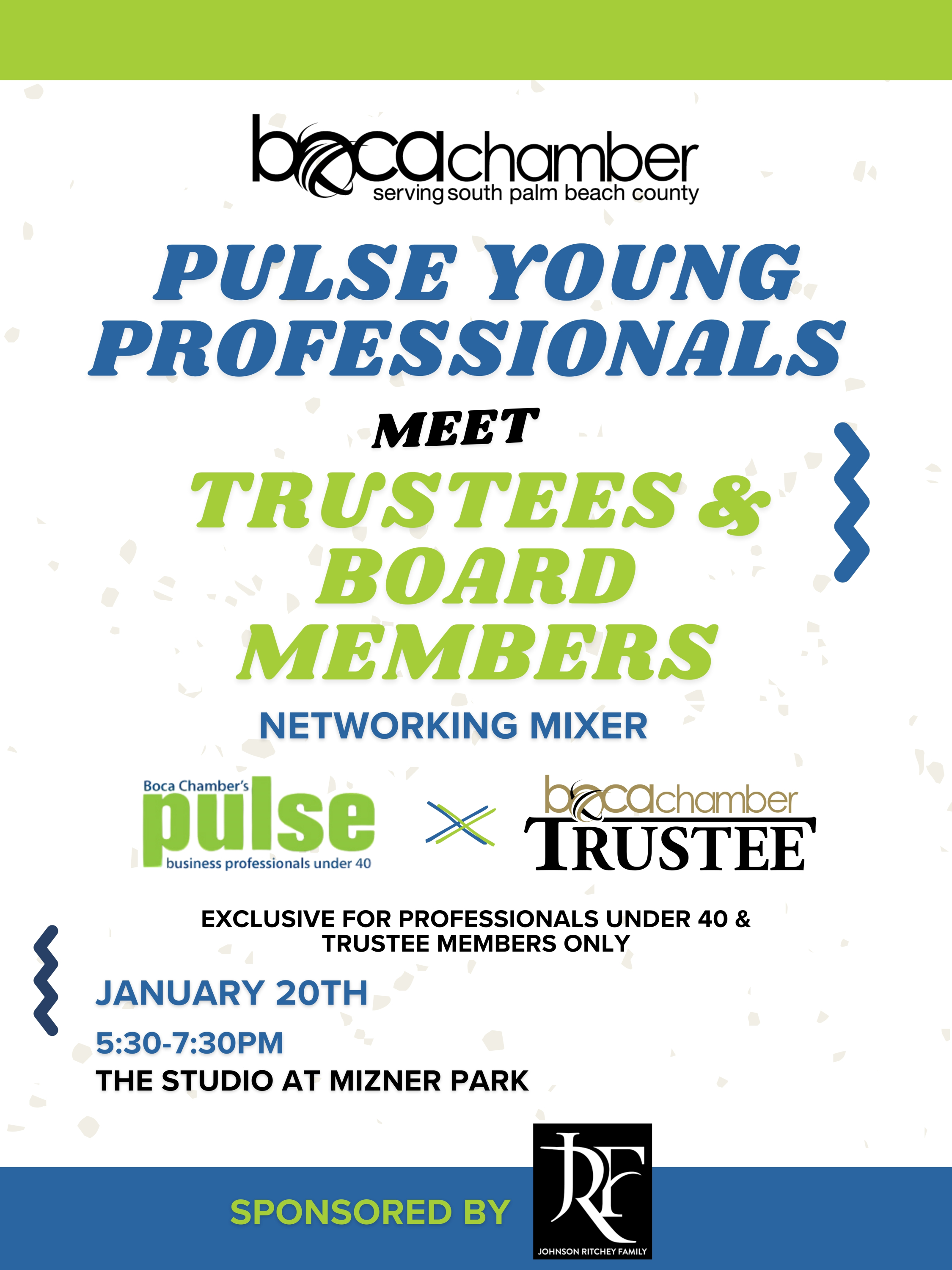 This gathering is exclusively open to Chamber Members who are Young Professionals under 40 and Boca Chamber Trustees